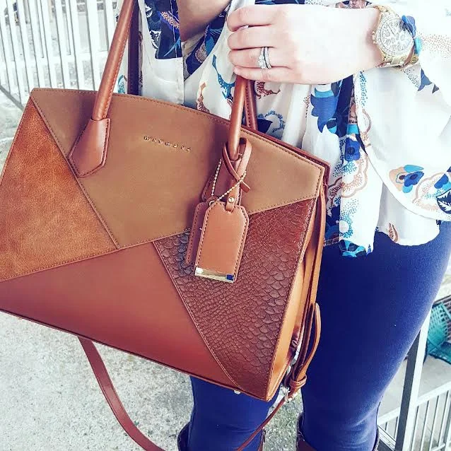 The bag I received is a beautiful rich chestnut bag from With 212. It has more of a structured look which I am currently obsessed with so I was happy when I opened this up! I found it on their website and it retails for $138! It has 2 handles on top so I can hold it in the crook of my arm and also comes with a removable adjustable long strap so I can carry it cross body. I love when I can carry my bags 2 ways so this was a HUGE plus for me. The hardware on it is a nice shiny gold and feels sturdy and well made. It has 2 "key chain" or charm kind of details on the front with one that looks like it was inspired by a luggage tag and the other is more of a tab with the brand name on it again. I love these added details.The front of the bag has 4 panels each showing a different look. 1 is similar to suede, 1 is pebbled, 1 is crocodile like, and the other is smooth like the rest of the body. On the bottom are 4 purse feet which is nice. The zipper on top is super heavy duty and feels great. Inside there are 2 pockets on either side and the lining is a dark gray. I have been carrying a Kate Spade Cedar Street Hayden bag for the past few months and the quality of my Ivory Clasp bag is on par or even slightly better! I can just tell by holding it and touching it that my bag is going to last a long time.